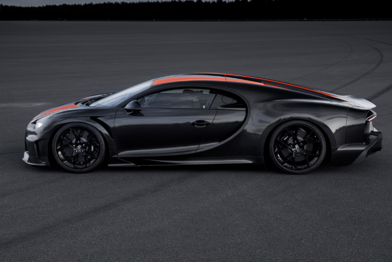 With the Super Sport 300+, Bugatti took the Chiron and optimized the bodywork for more slippery aerodynamics. These include a longer rear end, a modified tailpipe, and strategically placed vents that reduce the drag, enabling it achieve stunning velocities. The record-setting top-speed is a a substantial bump up from the run-of-the-mill Chiron, which maxes out at an electronically-constrained 261 mph.